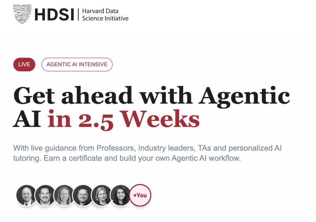The Agentic AI Intensive by the Harvard Data Science Review and Harvard Data Science Initiative helps leaders design and implement agent-first workflows in just 2.5 weeks through live instruction, industry labs, and personalized AI tutoring.